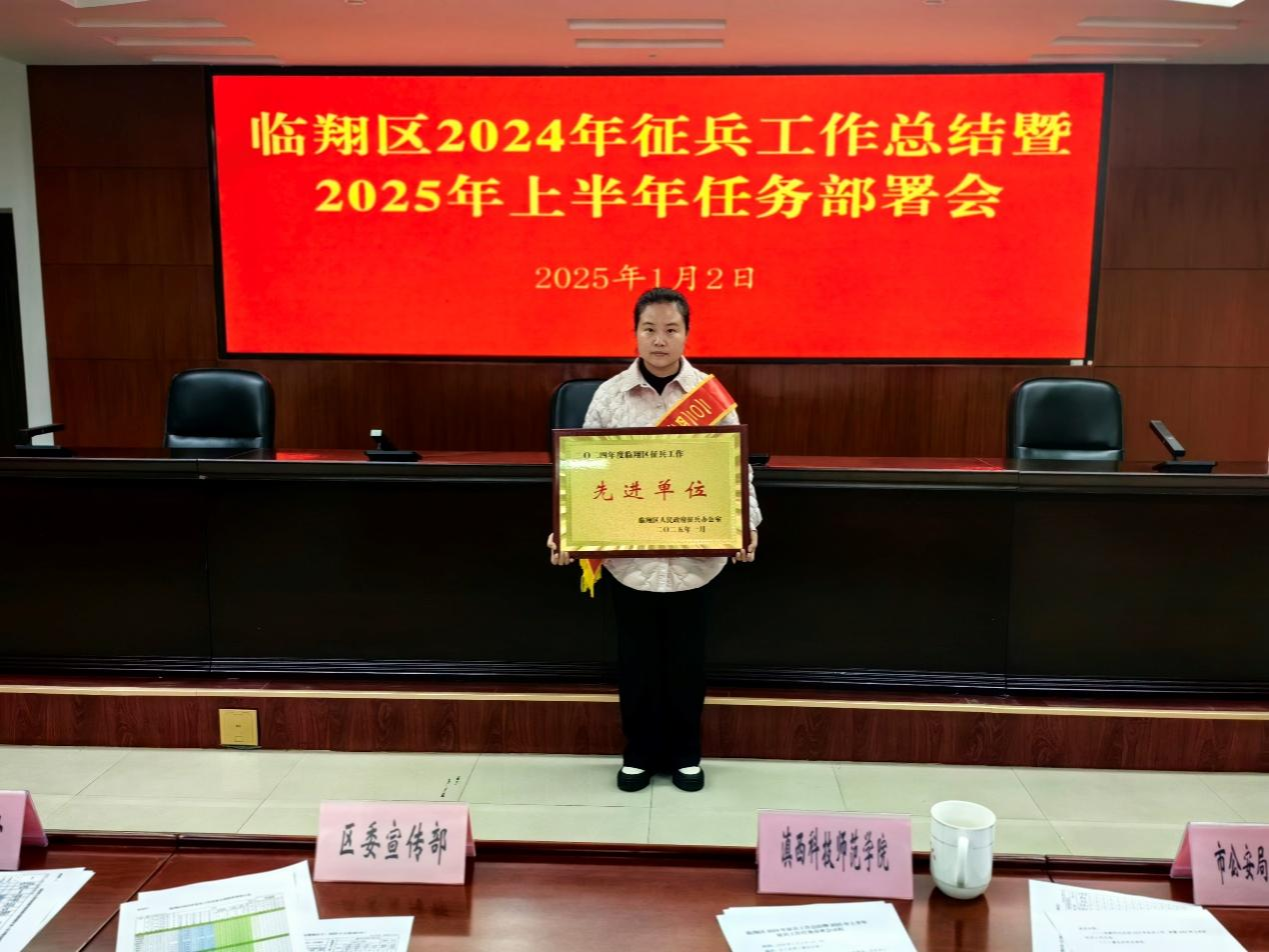 近日,临沧市临翔区举行2024年征兵工作总结暨2025年上半年任务部署会,我校在征兵工作中表现突出,荣获“征兵工作先进单位”荣誉称号,学生处李虹同志荣获“2024年度征兵工作先进个人”。这一成绩的取得是我校深入学习贯彻习近平强军思想,落实习近平总书记关于加强全民国防教育的重要指示精神,创新国防教育工作的重要体现。