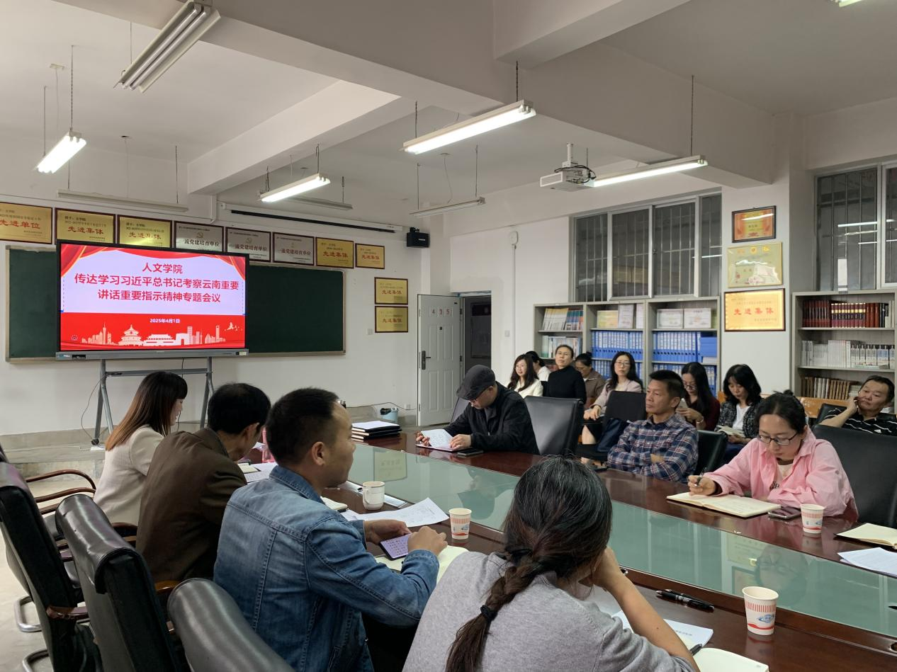4月1日,人文学院召开会议,认真传达学习习近平总书记考察云南重要讲话重要指示精神,安排部署学习宣传贯彻落实工作。