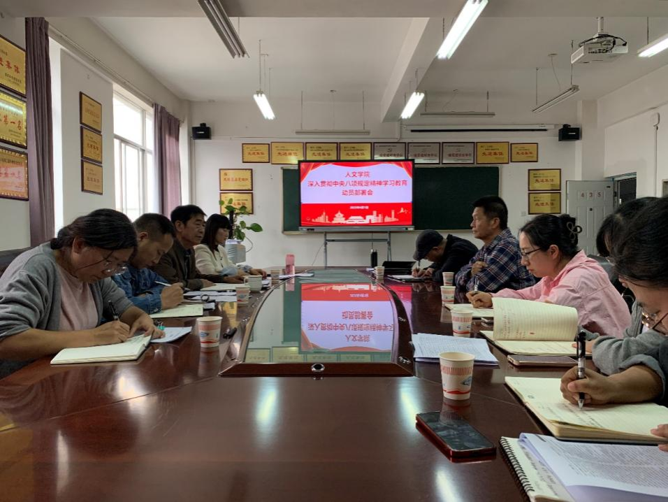 4月1日,人文学院召开会议,研究部署深入贯彻中央八项规定精神学习教育工作。