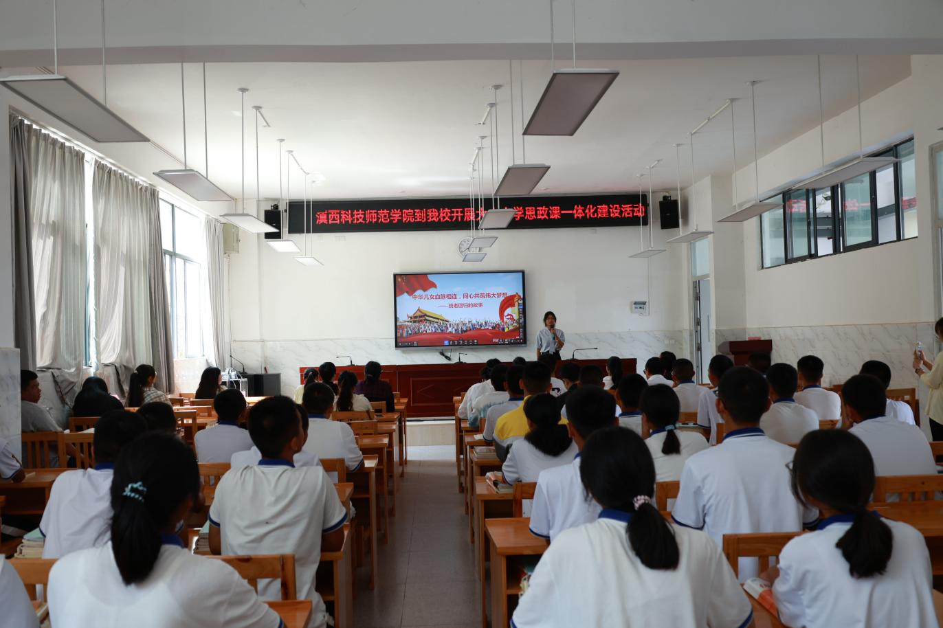 近日,我校师生赴沧源佤族自治县民族中学开展“思政同心圆边疆铸魂行”大中小学思政课一体化共同体建设活动。通过榜样事迹宣讲、红色故事分享等形式,两校师生共上一堂“大思政课”,在情感共鸣中厚植家国情怀,凝聚奋进力量。