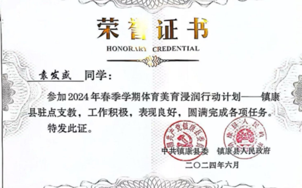 袁发盛发挥专业优势,践行党员先锋模范作用,报名参加云南省美育浸润计划,前往镇康边境县实习支教,将非物质文化引入小学课堂,获得实习学校的认可,为美育事业贡献了自己的力量。