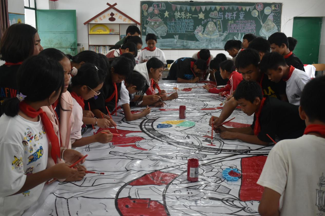 教师教育学院师生与孩子们共执画笔,以斑斓的色彩描绘沧源佤山新风貌的十米长卷。画面中,昔日破陋的茅草屋变为崭新的砖瓦房,崎岖山路化为通达坦途,身着民族盛装的佤族群众笑脸盈盈,背景中飘扬的党旗鲜艳夺目。这幅镌刻着佤山儿女赤诚初心的壮美画卷,在无声处奏响时代强音,以最质朴的笔触勾勒出一堂直抵人心的思政大课。