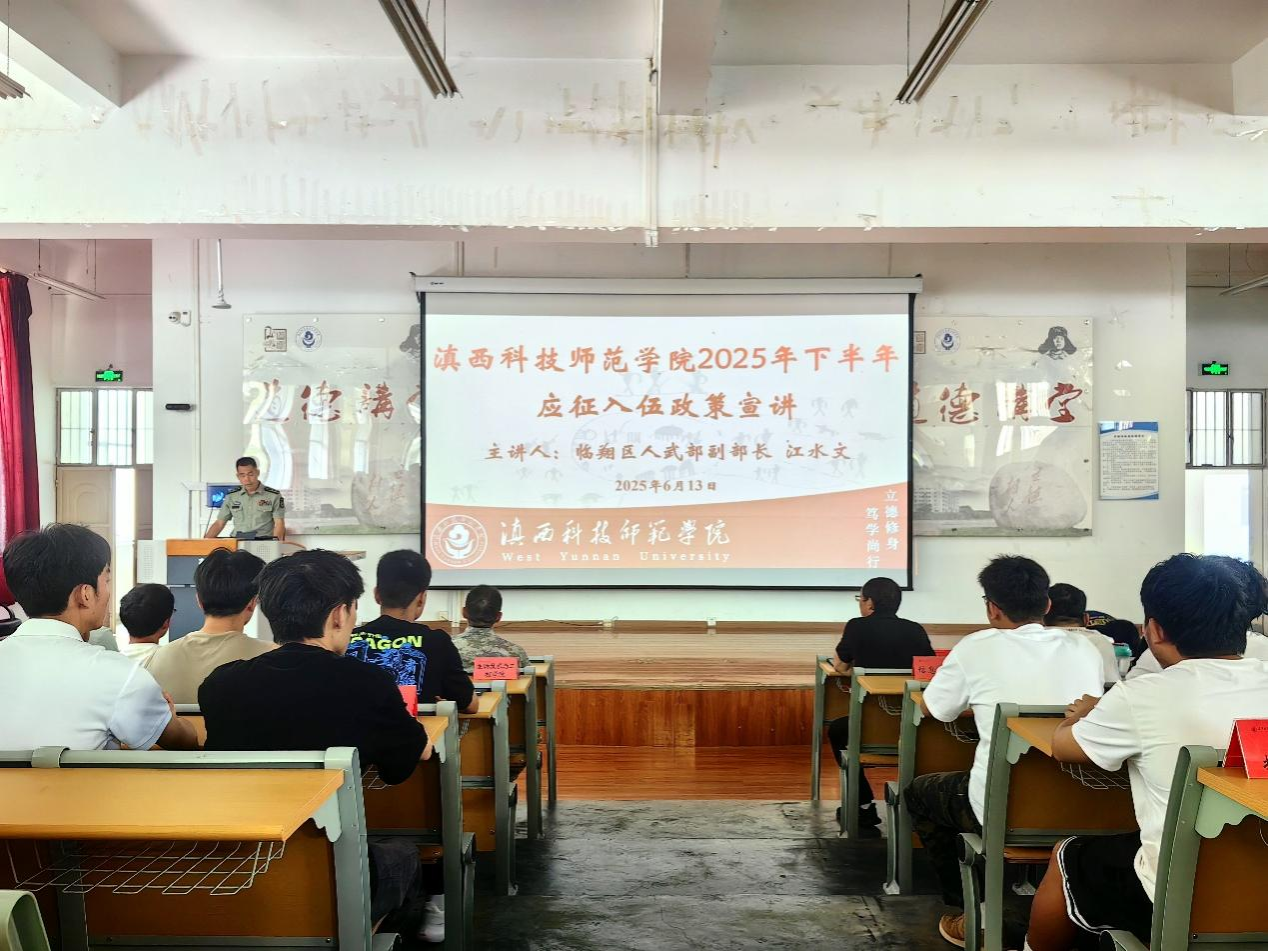 6月13日,学校邀请临沧军分区动员处上校处长陈鹏、临翔区人武部中校副部长江水文到校开展2025年直招军士集中宣传活动。