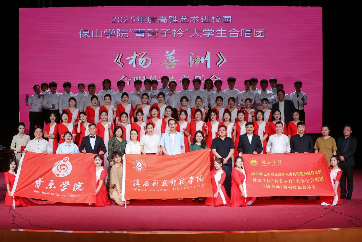 近日,保山学院“青青子衿”大学生合唱团携原创音乐思政力作《杨善洲》走进我校,以“弘扬杨善洲精神”为主题,为师生呈现了一场震撼心灵的高雅艺术盛宴。音乐会由云南省教育厅主办,通过四个乐章的艺术叙事,将杨善洲精神转化为可感可知的旋律符号。