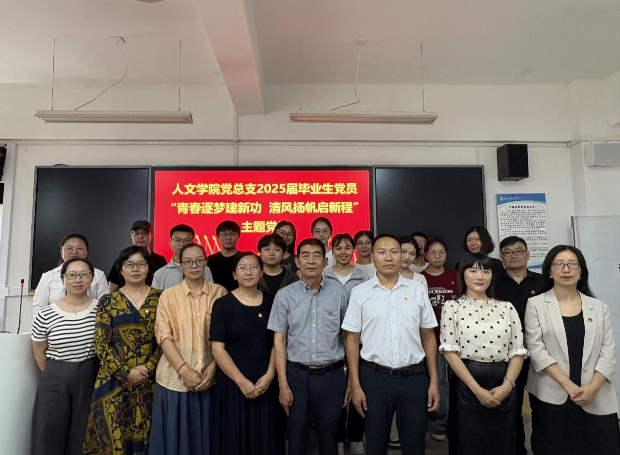 近日,人文学院党总支开展2025届毕业生党员“青春逐梦建新功 清风扬帆启新程”主题党日活动,学院全体师生党员、学生干部、发展对象、入党积极分子和入党申请人代表参加活动。