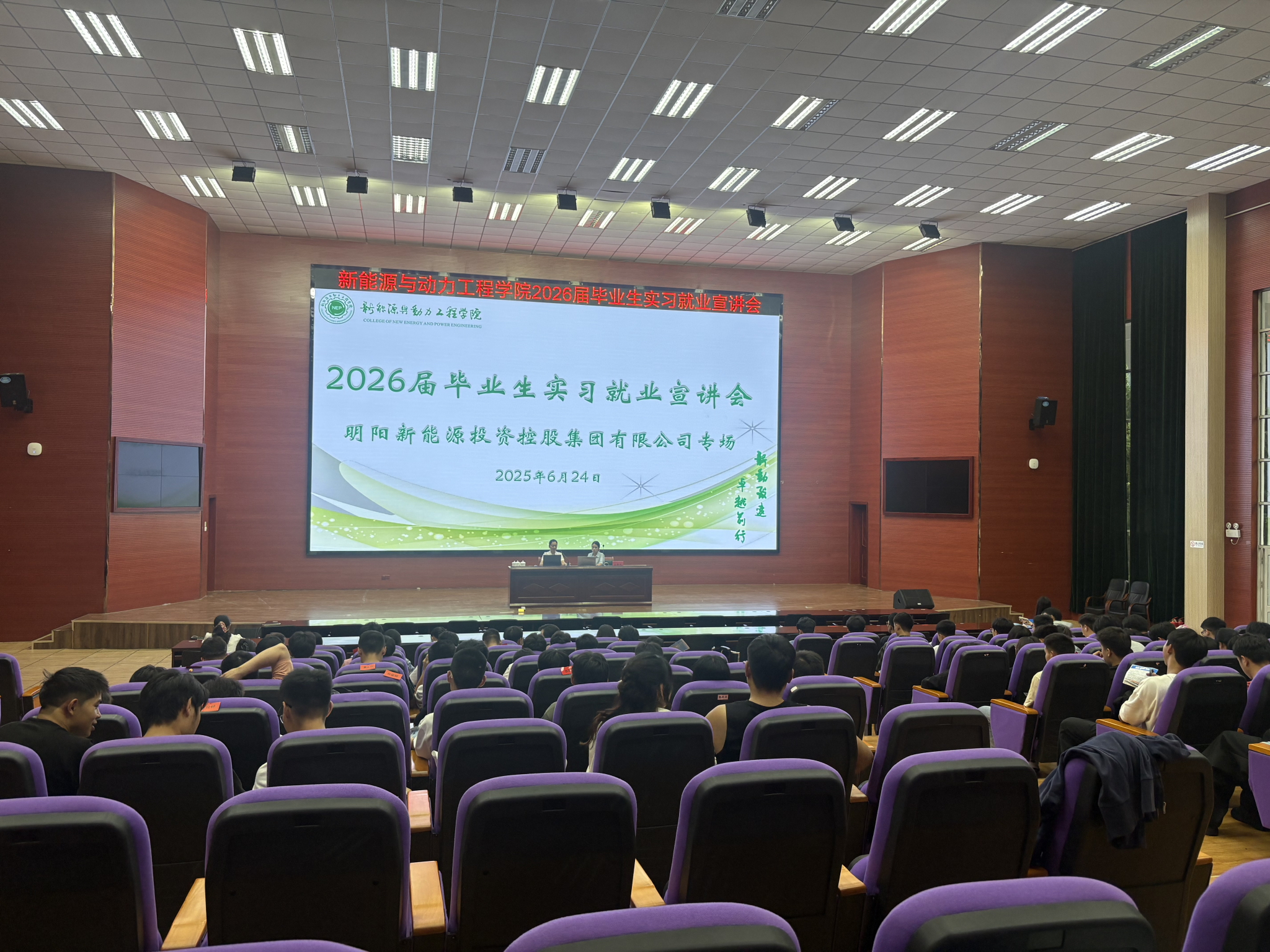 近日,贵州明阳新能源有限公司为新能源与动力工程学院2026届毕业生开展实习就业宣讲会,学院2026届毕业生及负责实习就业工作的相关教师参加会议。