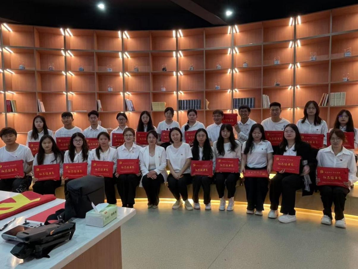 活动上,毕业生党员代表宣读入党申请书,重温入党初心,全体党员面向党旗重温入党誓词;学院领导为毕业生党员赠送“红色随身包”。