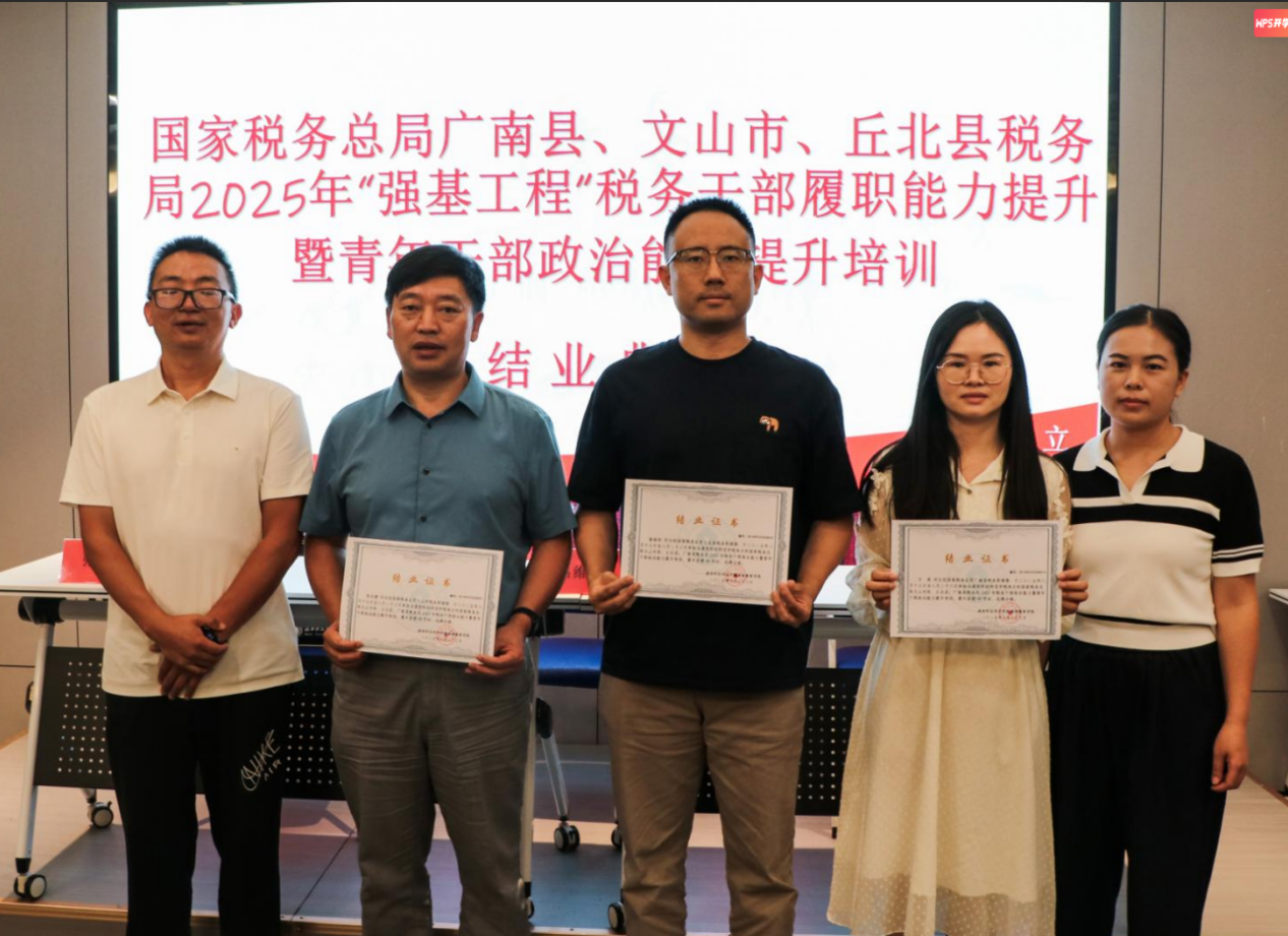 8月23日,由我校承办的文山州文山市局、丘北县、广南县税务局2025年税务干部综合能力培训暨青年干部政治能力提升培训班结业仪式在我校举行。职业教育学院(继续教育学院)院长吕维体,文山州广南县税务局党委委员、副局长罗梦菊出席结业仪式并讲话。