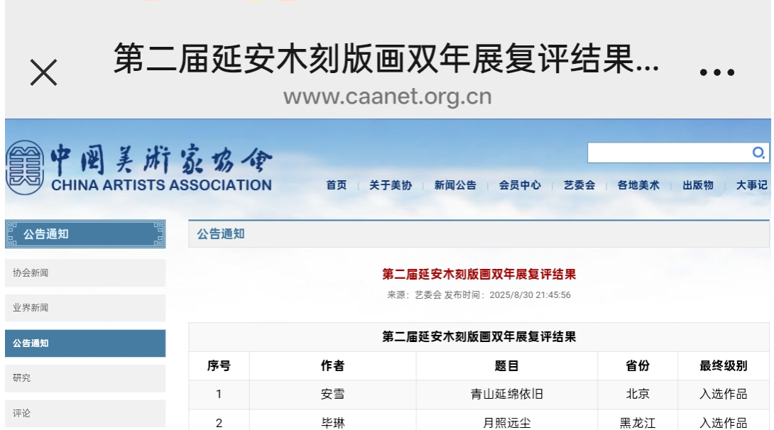 近日,第二届延安木刻版画双年展复评结果公布,我校艺术与航空服务学院2022级美术学2班学生张潇月的作品《惊蛰》入选。