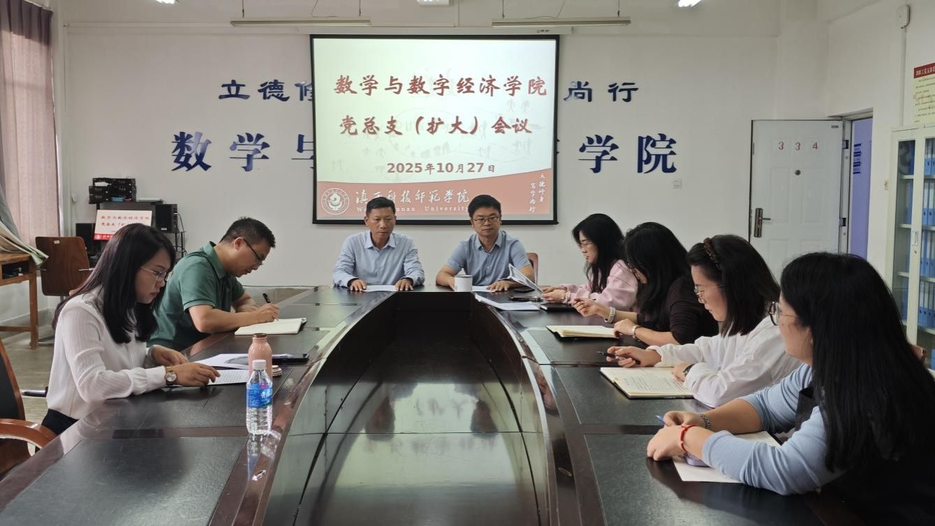 10月27日,数学与数字经济学院召开党总支(扩大)会议,传达学习贯彻党的二十届四中全会精神,研究部署贯彻落实举措。学院党政领导、党总支委员、党支部书记及教师党员代表参加会议。