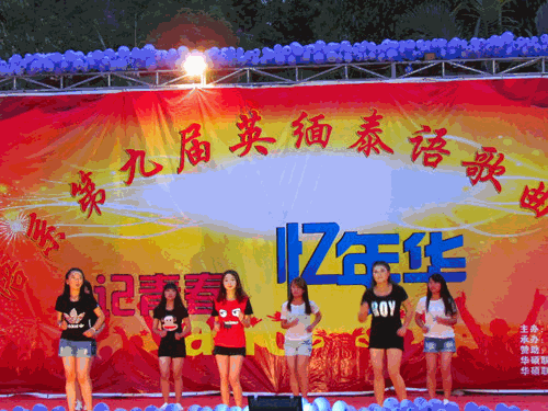 (校园记者 周应香)2014年4月26日晚7时,外语系在球场舞台成功举办第九届英缅泰语歌曲大赛。
