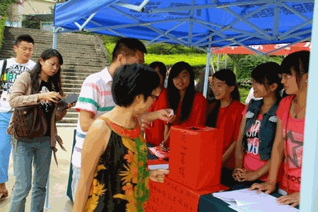 图为爱心募捐的同学前来献爱心