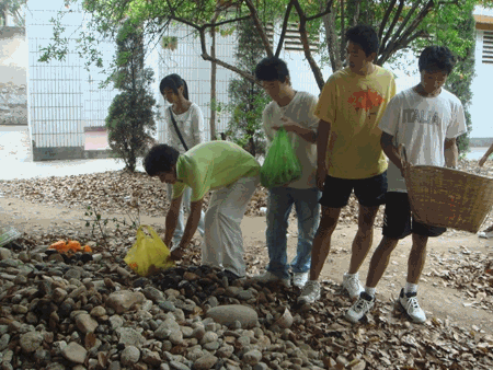 座谈会结束后,受资助的所有学生践行诺言,身体力行,大家怀着感恩的心组织了一次有意义的美化校园活动---为学校拣铺路石。