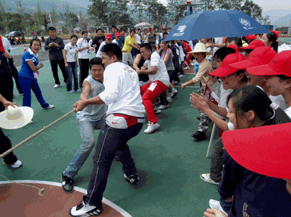 经过简短的开幕式之后,运动会拉开了帷幕。来自各代表队的运动健儿以饱满的热情、高昂的斗志和良好的道德风尚投入到这次比赛之中。本次活动共设巨人之履、齐心协力、蜻蜓点水、张冠李戴等六个妙趣横生的项目。随着比赛项目的逐一展开,运动场上很快就传来阵阵欢呼声,整个运动场洋溢着喜悦欢快的气氛。