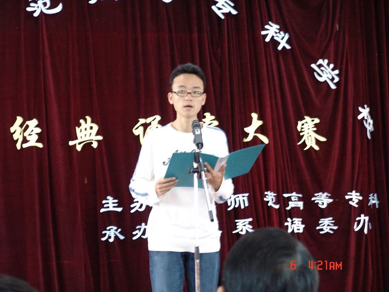 决赛分为学生组和教师组,14名学生入围决赛,从初赛胜出的4名教师作为诵读展演为大赛抹了重重的亮色。