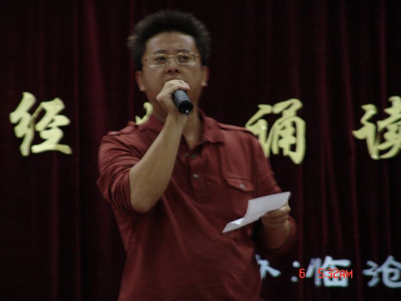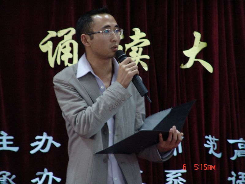 中文系主任赵卫华教授对比赛作了点评:选手准备充分,精神面貌好,感情充沛,语言表达自然、流畅。说到不足,他说:选手的普通话音准可以再上一个台阶,舞台表演经验需要继续积累。之后,作为诵读爱好大军一员的赵老师给观众们送上了《海燕》诵读,浑厚的嗓音、激昂的感情引发全场阵阵掌潮。赵教授还饶有雅兴地用重庆话全新诠释了《海燕》,观众的笑声、掌声交叠,给赵教授的表演终极至上的评价。