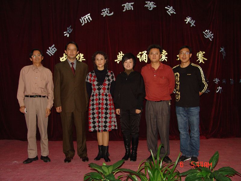 校领导和评委团成员(从左起):周孔张副教授李岳赵庆明副书记丁湘汀赵卫华教授辛锡灿老师