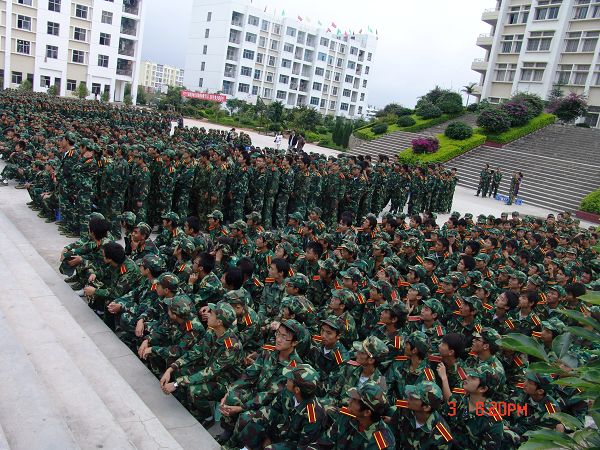 临近8点,师生们基本在中心篮球场给自己定好了位,嘹亮、雄壮的“一二一”和整齐的脚步声吸引了全场的目光和喧闹,那是助临某部队派出的赴我校完成军训任务的小分队,共62名官兵组成,分为2个营,由营长和副营长统管,每个营下分5个连,每连只设连长一名,下设教官具体辅导新生训练。