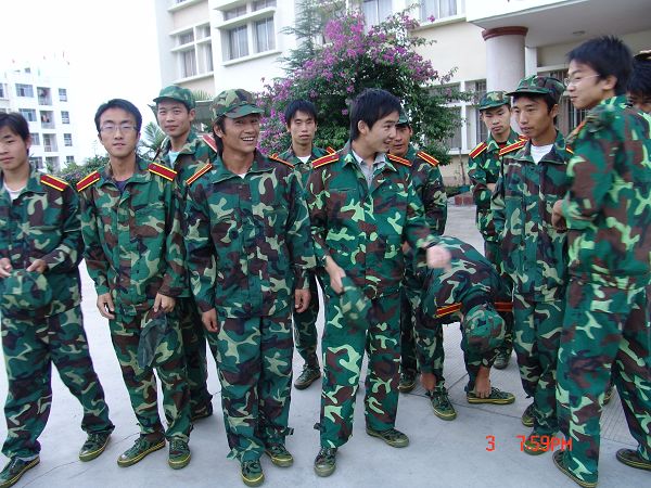 08年新进教师杨丕华,作为物理教育班的班主任,也充任指导员,他说:迷彩服把记忆中的自己带了回来,很替同学们高兴,高兴他们又踏入了人生的一个崭新阶段,也希望同学们能顺利通过这场对身体和意志力的考验,取得好的成绩。李正老师,也是08年新进的教师,他由感而发:穿军装的男人最帅,穿军装的女人最飒爽,穿迷彩的学生最富活力,希望同学们不负迷彩对他们的厚望。