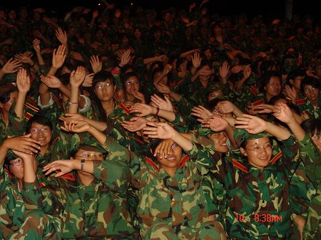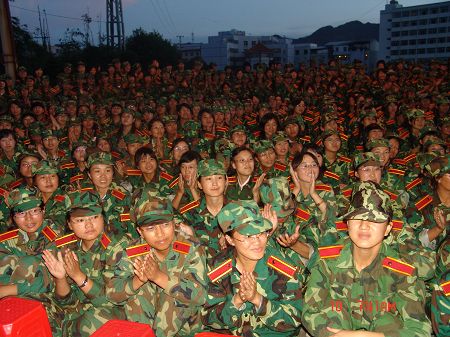 晚会的主力军是正在接受军训洗礼的新生们,以连为单位,各出一个节目;晚会还有老生们的指导、献演、默默为舞台绚丽做的幕后工作。
