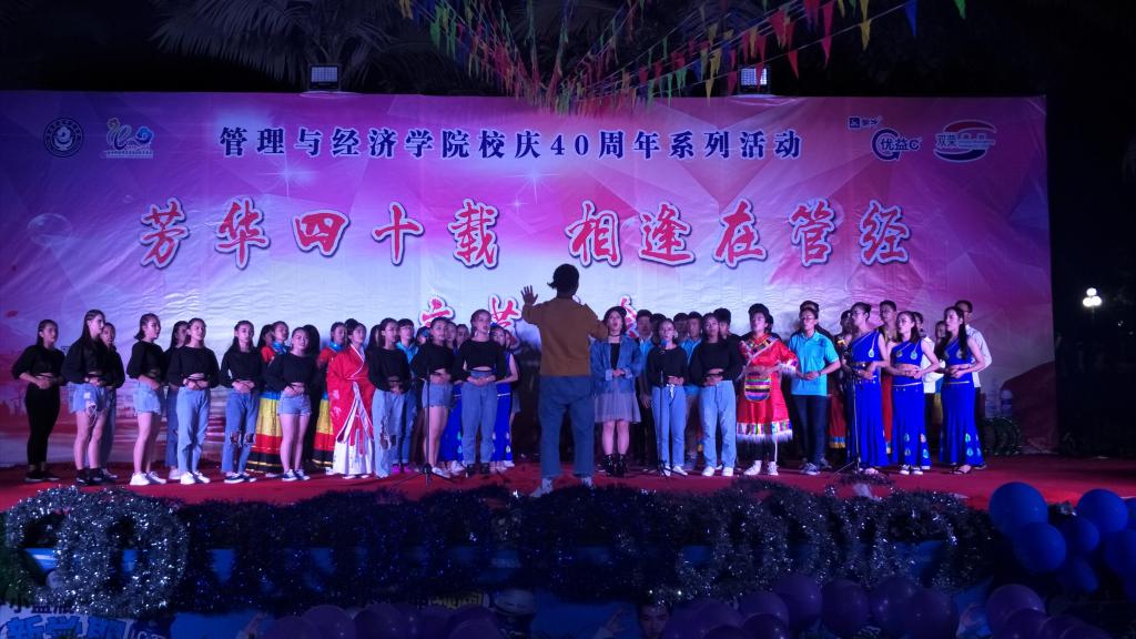 10月27日晚,管理与经济学院“芳华四十载,相逢在管经”文艺晚会在学校舞台球场隆重举行。活动由管理与经济学院主办,管理与经济学院学生会承办,学院各个团支部、滇韵礼仪社协办。管理与经济学院1000余名师生一起观看了文艺演出。