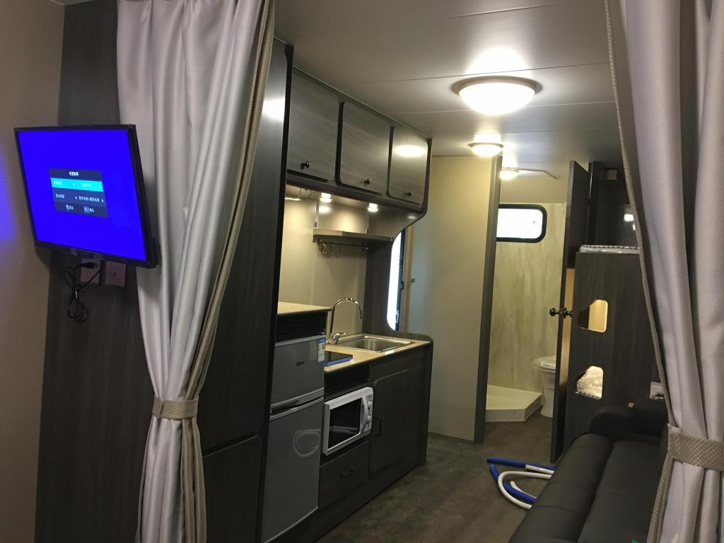 房车,又称"车轮上的家",兼具"房"与"车"两大功能,但其属性还是车,是一种可移动、具有居家旅游必备的基本设施的车种。管经学院房车实训设备属于营地式拖挂(DX亲子款)房车,它由箱体系统、卫生间系统、沙发系统、客厅系统、卧室系统、床铺系统、电路系统和水路系统共同组成。在房车实训设备内能实现自己做可口的饭菜、洗个热腾腾的澡、睡柔软舒服的床、看电视、听音乐,享受旅游休闲的美好时光。