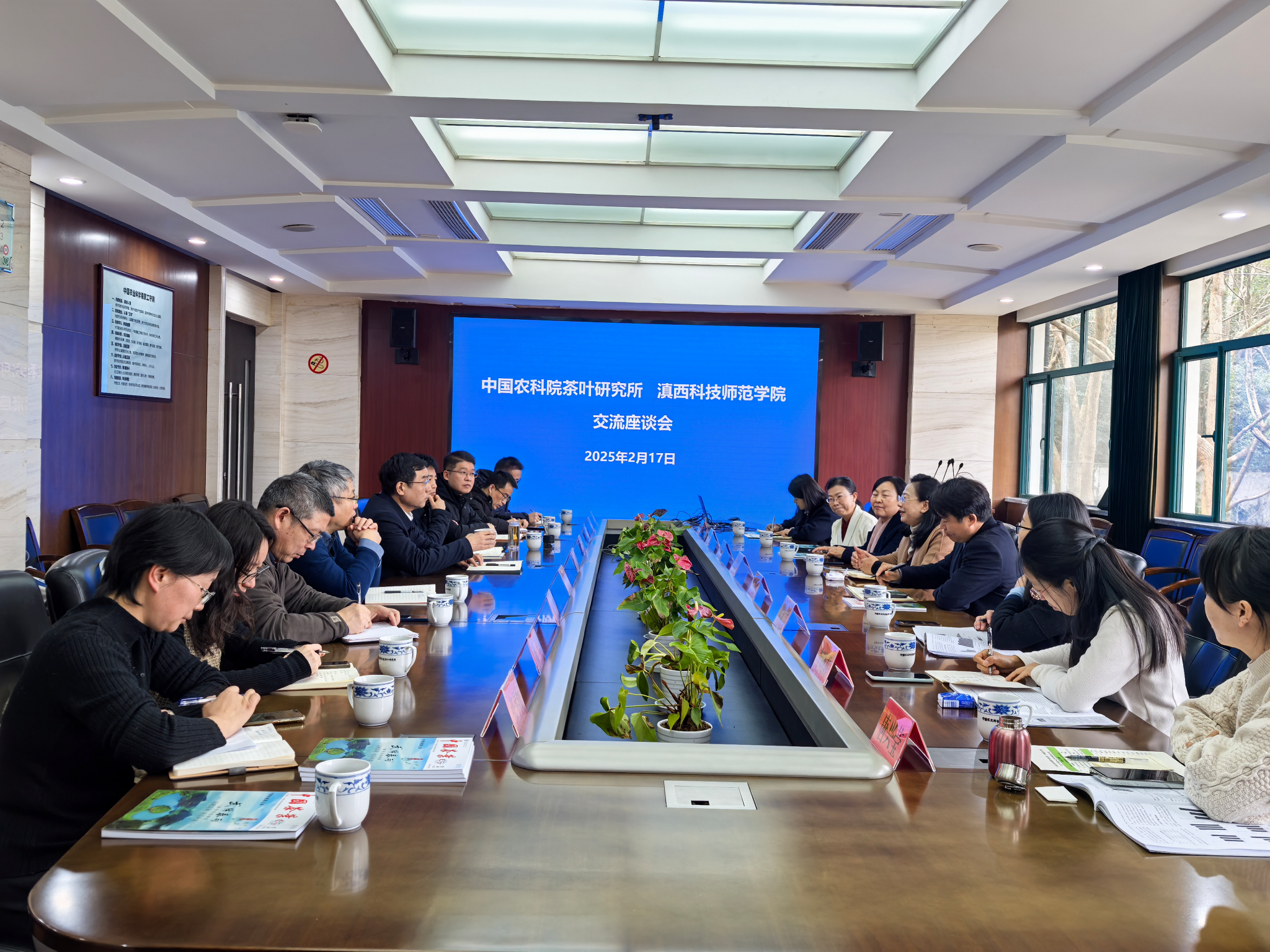 在与中国农业科学院茶叶研究所的交流座谈会上,中国农业科学院茶叶研究所十个科研团队分别围绕茶树遗传育种、茶树病虫害防控、茶叶品质化学、茶叶加工与深加工、茶叶质量安全、茶产业经济与政策、茶文化与茶健康等研究方向进行了详细介绍。所长姜仁华研究员表示,要在双方共建“云南省澜沧江流域茶树资源保护与创新利用重点实验室”的基础上,进一步深化合作,积极探索合作新模式,建立健全工作机制,细化合作清单,大胆作为。