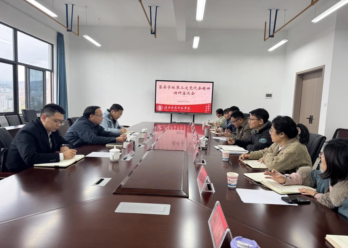 信息学院负责人重点汇报了组织建设、意识形态建设、专业建设、学生就业实习和实验实训建设等方面的工作进展。阮凤斌在深入了解学院发展面临的瓶颈问题后指出,要充分发挥党建引领作用,切实做好师生思想政治工作,关注师生身心健康与职业发展,维护学院安全稳定大局;要以数字化教育为抓手,深入谋划学院发展内涵,明确发展主题主线;要充分利用产教融合优势,通过校企合作项目优化资源配置,将教学数字化转型作为学校建设边疆国门大学的重要抓手,力争在新工科领域实现突破性进展。