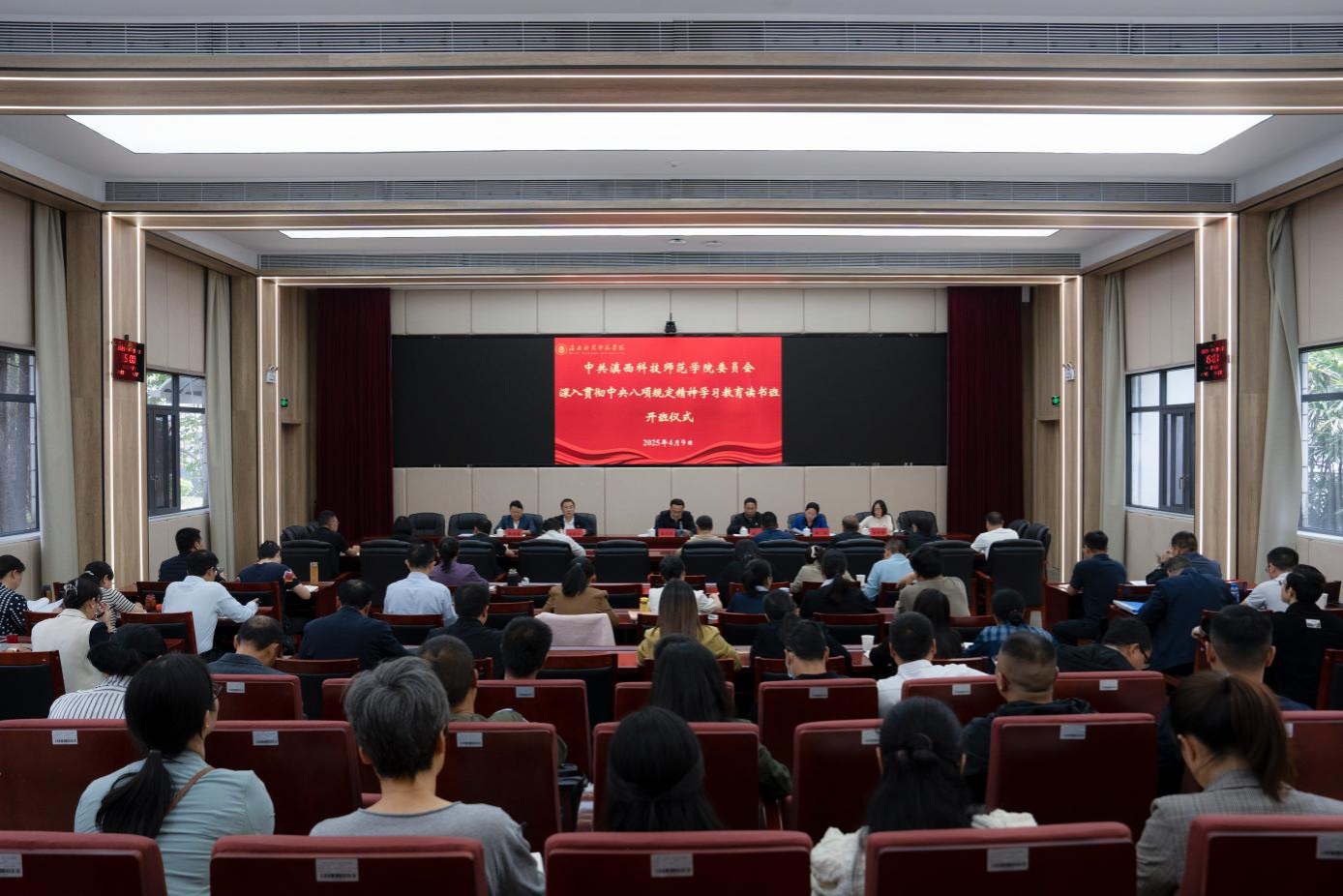 为深入贯彻中央八项规定精神学习教育,切实推进全面从严治党向纵深发展,4月9日,学校正式启动深入贯彻中央八项规定精神学习教育读书班。校党委书记阮凤斌出席开班仪式并作动员讲话。