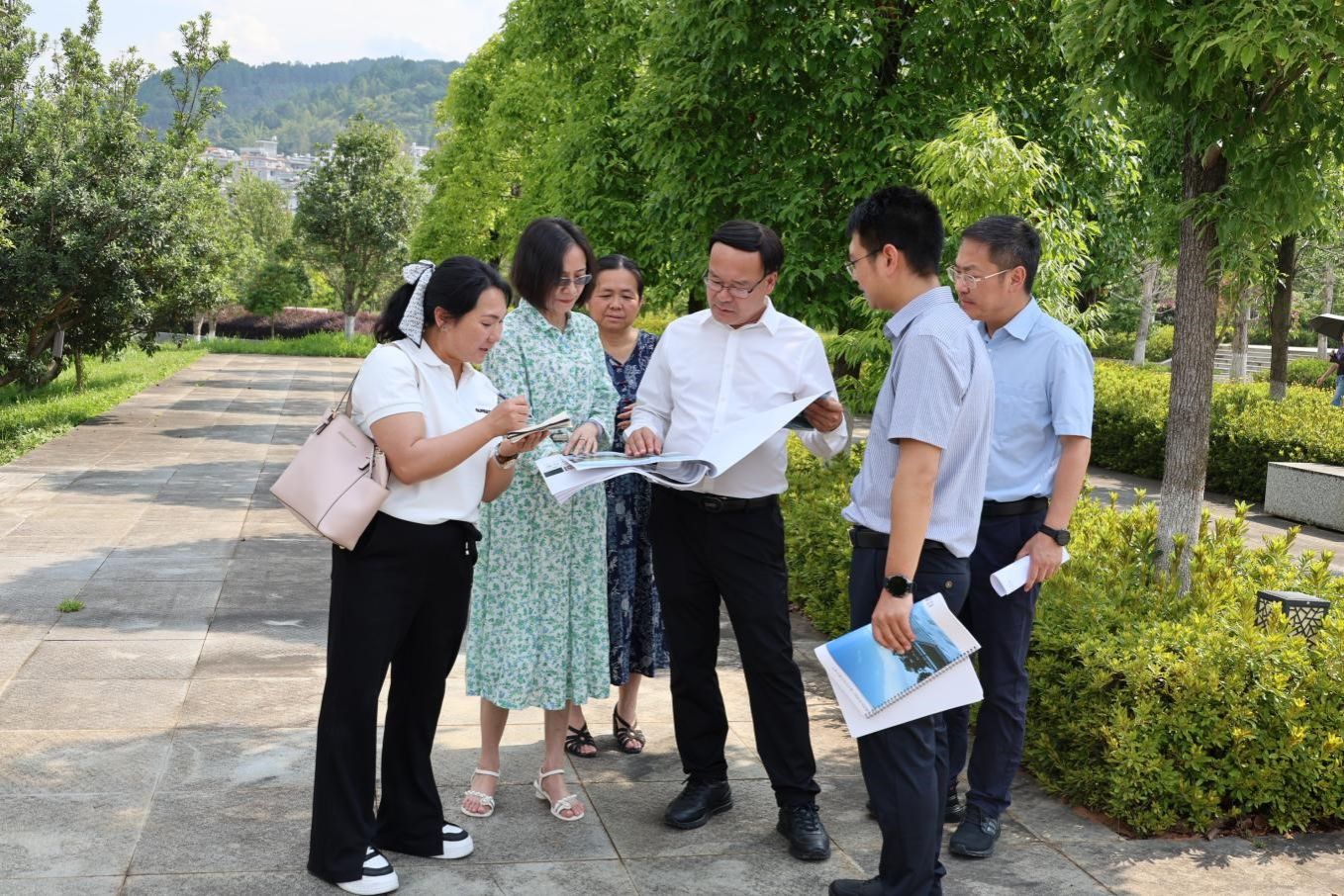 阮凤斌强调,在主题馆的整体布局上,各区域要合理分布、互不干扰,且过渡自然,形成有机整体;在景观设计上,要融合文化特色与政治内涵,让师生在欣赏美景的同时接受政治教育和文化熏陶;在设施配备上,要严格把控质量标准,选用环保、耐用、安全的材料,确保设施的使用寿命和师生的使用安全;在内容设计上,要巧妙融入党的先进理论,增强师生对党的政治认同、思想认同、理论认同、情感认同。