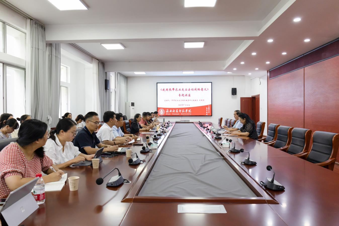 7月14日,华中农业大学国际减贫研究院刘国道研究员到校开展题为“我国热带农业走出去的战略意义”的专题讲座,校党委副书记、校长刘艳红主持会议并讲话。