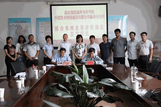 (宣传部 张汉仙)6月7日上午,临沧师范高等专科学校与中国联合网络通信有限公司临沧市分公司综合布线业务合作协议签字仪式在临沧师专博雅楼四楼会议室举行。双方就学校新建南北实训楼及图书馆弱点系统布线工程相关事项达成共识,双方将在固定语言、基础数据、互联网业务、网元出租、3G无线传输、移动通信业务等服务方面继续深度合作。