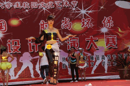 (校团委 文/沐尊凤 图/吴纯浪)为增强绿色环保、文明节俭意识,让节俭之风吹拂美丽校园,5月25日,以俭约为主题的校园服装设计表演大赛在舞台球场举行。大赛作品分为靓丽时尚组、经典晚礼组、传统民族风、创意类四组,参赛选手设计的作品均由学生按照倡导环保、富有个性、主流引领的要求,自主设计、亲手缝制,选手们所选材料大胆,服装设计个性十足,作品设计从造型、材质、色彩、结构、工艺、空间、细节等方面入手,贴近环保,既有鲜明民族性又有强烈的时代特征,以直观、质朴的方式反映出我校学生节俭的引领、蓬勃的激情、鲜明的个性。