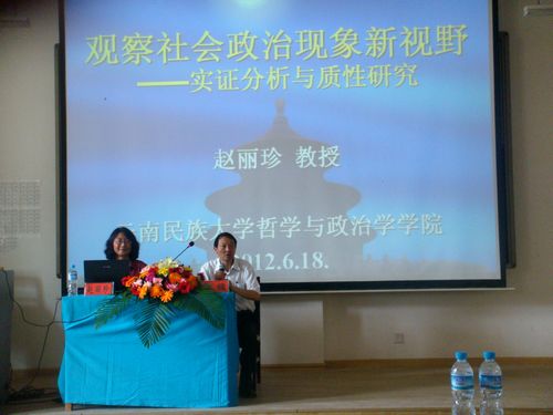 云南民族大学哲学与政治学学院院长苏丽杰教授为师生们作了题为“高校团学工作的特点及其规律探析”的学术讲座。哲学与政治学学院林庆教授的学术讲座题为“论行政伦理诉求”。赵丽珍教授应邀作题为“观察社会政治现象新视野——实证分析与质性研究”的学术讲座。