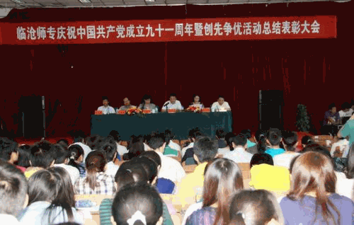 (党委宣传部 文/张汉仙 图/张玉超)2012年6月25日,临沧师专隆重举行庆祝中国共产党成立91周年暨创先争优表彰大会。学校党委书记谢昌浩,党委副书记赵庆明,党委委员、副校长董大校,党委委员、纪委书记双春仁,副校长杨宝康及全体教职员工党员,部分离退休教职工党员和学生党员代表参加大会。会议由学校党委副书记、校长那金华主持。