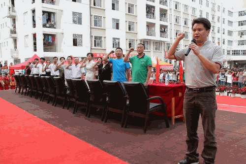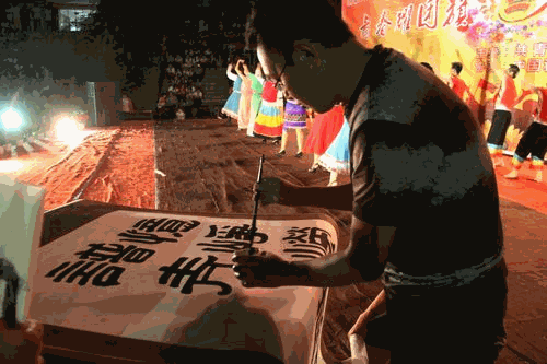 大绿树校区管理人员之一中文系副主任刘绍彬老师在校区舞蹈表演期间现场创作书法