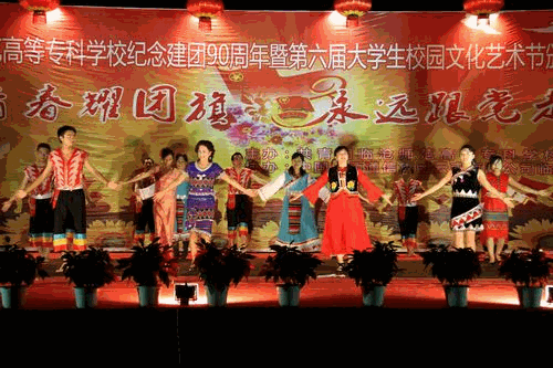 (校团委 文/沐尊凤 图/许瑞)为秉承和发扬“五四”爱国精神、讴歌我校共青团组织的优良传统、表彰先进,由校团委主办的“青春耀团旗 永远跟党走”为主题的纪念中国共产主义青年团建团90周年暨第六届大学生校园文化艺术节颁奖晚会于6月15日晚和16晚在大绿树校区和本部校区隆重举行。校党委副书记赵庆明、副校长董大校、中国移动通信集团云南有限公司临沧分公司副总经理禹智昌一行出席了晚会现场,校相关部门和系部领导、嘉宾和近千名师生参加了晚会。