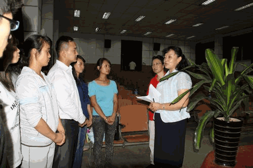 (党委宣传部 张汉仙)6月18日晚,校长那金华亲临现场观看我校参加今年云南省高校大学生心理剧大赛的作品《爱的回归》。在观看了同学们的表演后,那金华校长对该剧有针对性的提出了指导意见和建议。那校长勉励大家精心排演,克服目前存在的问题,努力将最完美的一面展现给观众,展示临沧师专良好的形象。同时,嘱咐随行的教师,照顾好同学们的日常生活,减少她们的后顾之忧,让她们能安心比赛,争取最好的成绩。据了解,在此次云南省高校大学生心理剧大赛初赛中,临沧师专作为州市唯一的一所专科院校进入决赛。目前,该剧组的同学们已赴昆明参加全省的决赛。