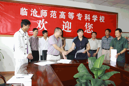 (校党委宣传部 文/张汉仙 图/张玉超)5月16日上午,临沧师范高等专科学校寻求合作伙伴融资建设图书馆、实验实训楼、足球场工程合作合同签订仪式在博雅楼四楼会议室举行。临沧师专校长那金华,党委副书记赵庆明,副校长董大校,纪委书记双春仁,副校长杨宝康参加签订仪式。