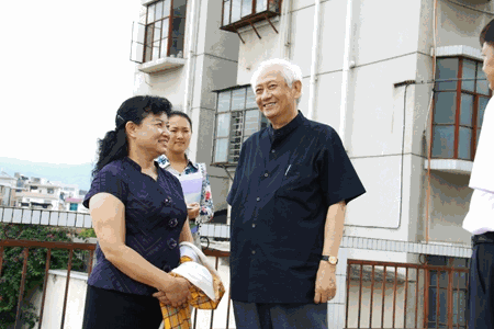 上图为清华大学建筑学院高冀生教授(左三)对学校建设提出宝贵意见