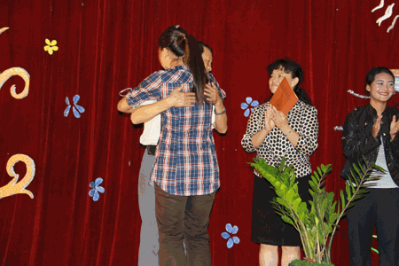 (校党委宣传部张玉超)2010年6月12日晚,电教楼阶梯教室座无虚席、站无空间,连两条通道和后门口都挤满了人。一张灿烂的笑脸出现了,面对同学们,美丽的大眼睛里总是满载着慈爱,可亲可敬可爱的那金华校长亲临政教系毕业晚会,全场沸腾了。