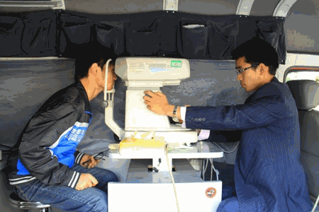 (校党委宣传部文/张玉超 图/陈奇云)2010年3月13日上午,云南大全视光学眼镜有限公司(以下简称云南大全眼镜公司)向临沧师专100名困难学生捐赠100付爱心眼镜。打开公司的流动验光车,摆开400多个眼镜款式,受捐赠的100名同学排队依此验光、挑选眼镜款式,据公司周哲副董事长介绍,100付眼镜将在一个星期之内从昆明送达100名同学。