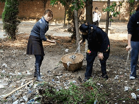 (校党委宣传部文/张玉超 图/黄经庭)2010年3月20日,周六早晨明媚的阳光,给一个轻松惬意的周末时光无尽启示。临沧师专樱花苑里(学生宿舍1号和3号院间)和笃学楼背面(由三面建筑围出的那块地),却出现了这样两群忙碌的人,有挥舞十字镐的,有清扫道路的,有移栽培土的……忙得不亦乐乎。