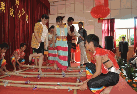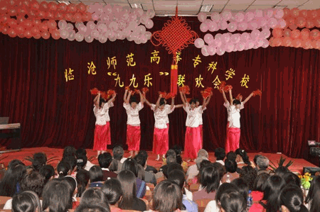 (校党委宣传部张玉超)2009年10月26日下午,电教楼阶梯教室舞台周围黄菊围绕,大红灯笼、中国结吊顶,荡漾着一种“福”气。值此重阳佳节和云南省第22个敬老节之际,临沧师专在这里举行“九九乐”联欢会。