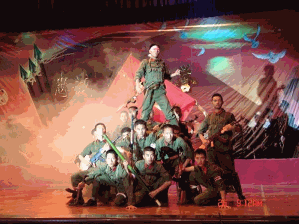 军训学生中的9名男生和9名女生用短短的三天时间,在军训之余练习舞蹈《溜溜的她》,舞台上,身着藏族服装的他们,舞蹈动作流畅、整齐,并且在舞蹈中注入了自己对音乐的认识,跳得有姿,而且有神。