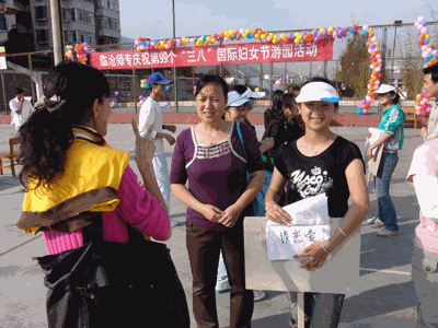 (党委宣传部 文/张玉超 图/陈奇云)2009年3月6日16时,学校灯光球场熙熙攘攘热闹起来,一张张熟悉、亲切的学校教职工面孔陆续来到了这里。粉色的气球藤蔓蜿蜒在网球场的铁丝网壁上,掩隐着一条红底白字的横幅:临沧师专庆祝第99个“三八”国际妇女节游园活动。