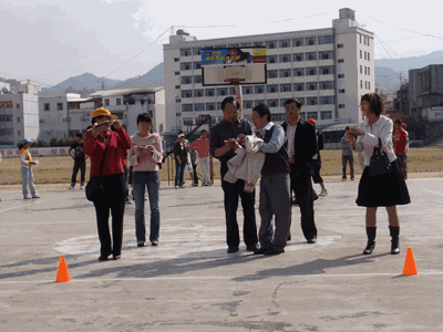 昔日的灯光球场被分割成10个小区,变成了一个充满10种趣味游戏的大乐园。每个小区的游戏规则说明牌明晰了参与者的思路,小区里的学生裁判规范着游戏的秩序,站在礼品区台桌前的同学微笑着打量因游戏而发生在园里的快乐场景,等待着前来领奖的人。在规定内完成游戏的,可获取相应的奖票,奖票就是领取礼品的凭证,奖票的数量意味着不同的奖品及数量。