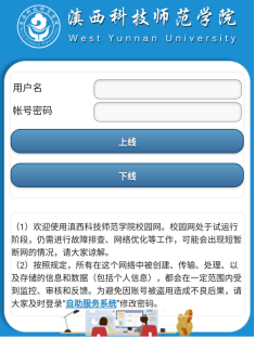 注:如果移动端(如手机)设置了拦截功能,则认证页面会被拦截,无法自动弹出,请在浏览器地址栏中直接输入下面的地址进行认证,校园网认证地址为:http://net.wynu.edu.cn:8080/。