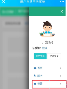 (1)手机用户点“用户自助服务系统”页面右上角的