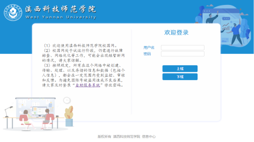 (3)登录校园网自助服务系统进行故障申报,自助服务系统网址:http://drcom.wynu.edu.cn:8080/Self。